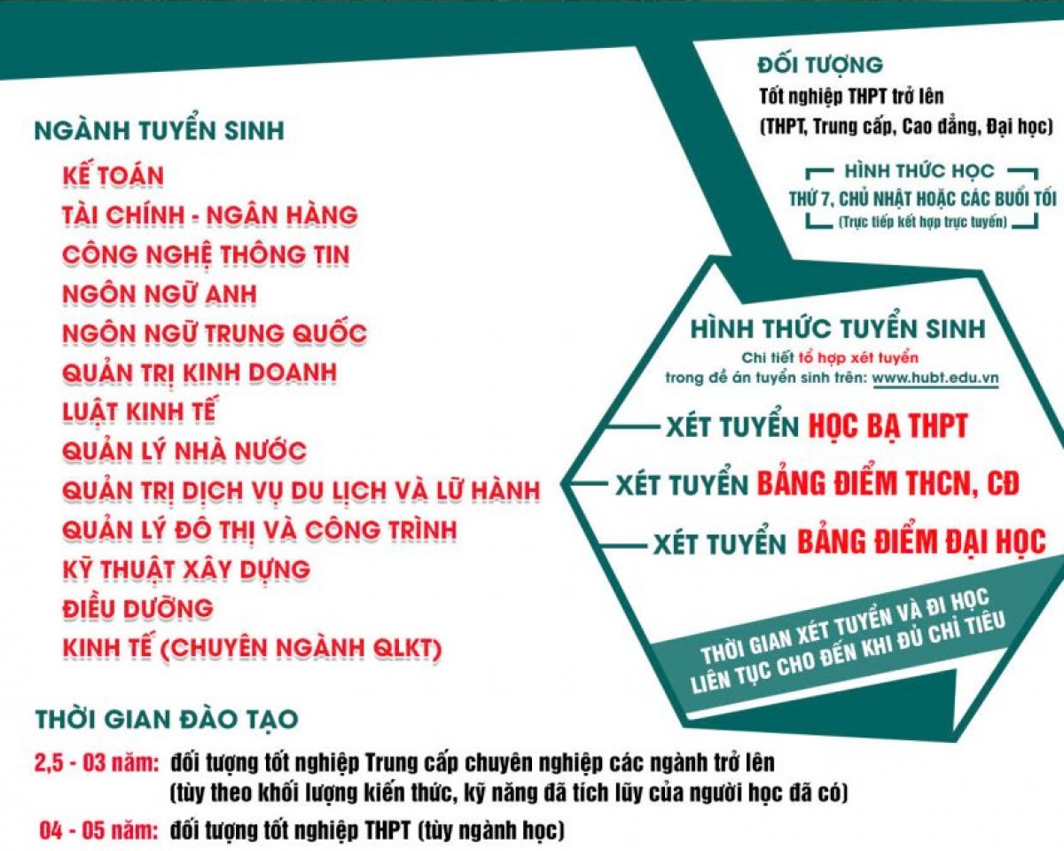 (Chi tiết tổ hợp xét tuyển trong đề án tuyển sinh trên: www.hubt.edu.vn).