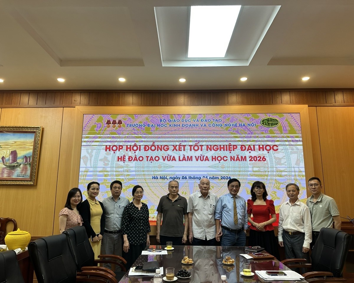 Sáng ngày 06/4/2026, tại phòng họp A205, Hội đồng xét tốt nghiệp và công nhận tốt nghiệp đại học hình thức vừa làm vừa học năm 2026 đã tiến hành họp, rà soát và đánh giá toàn diện quá trình đào tạo sinh viên các ngành: Công nghệ thông tin, Quản trị kinh doanh, Kế toán, Luật Kinh tế, Quản lý nhà nước, Ngôn ngữ Anh, Ngôn ngữ Trung Quốc.