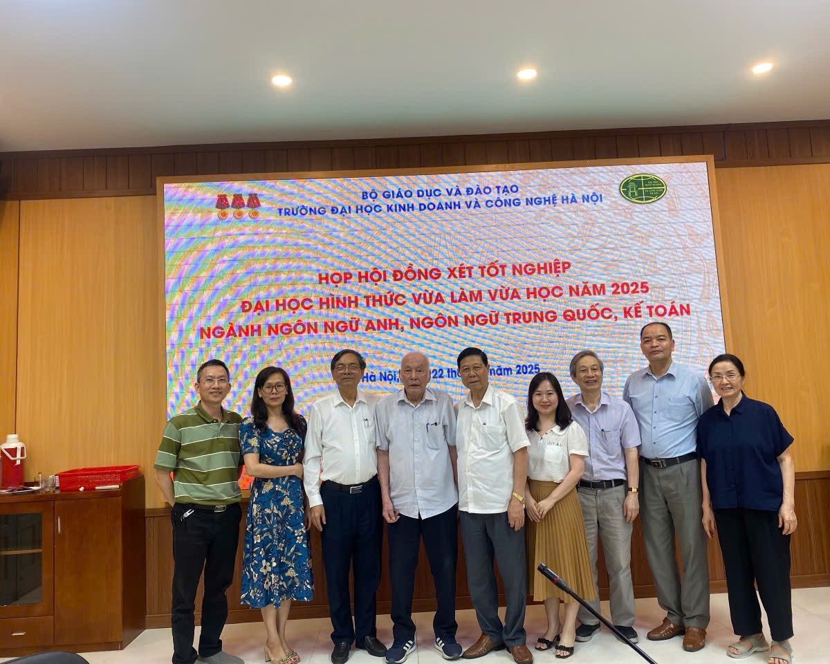 Ngày 22/5/2025, Trường Đại học Kinh doanh và Công nghệ Hà Nội đã tổ chức họp Hội đồng về việc xét và công nhận tốt nghiệp cho sinh viên đại học hình thức vừa làm vừa học (VLVH) năm 2025, với các ngành Ngôn ngữ Anh, Ngôn Ngữ Trung Quốc, Kế toán.